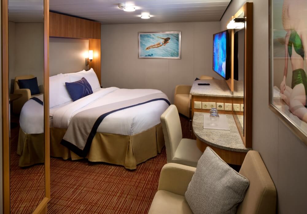 The Inside staterooms on board Celebrity Equinox® offer ample living space, with the comfortable addition of a flat-screen TV, sitting area, and unparalleled amenities.